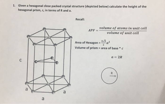 Solved 1 Given A Hexagonal Close Packed Crystal Structur