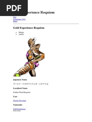 Gold Experience Requiem Wiki Jojo Amino Amino