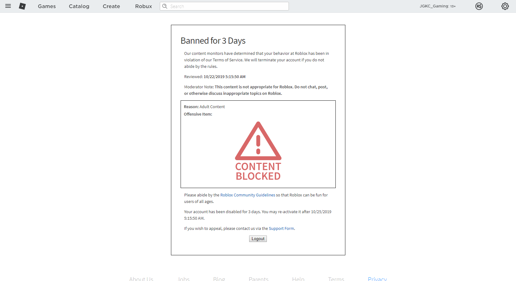My 3 Day Ban Roblox Bans