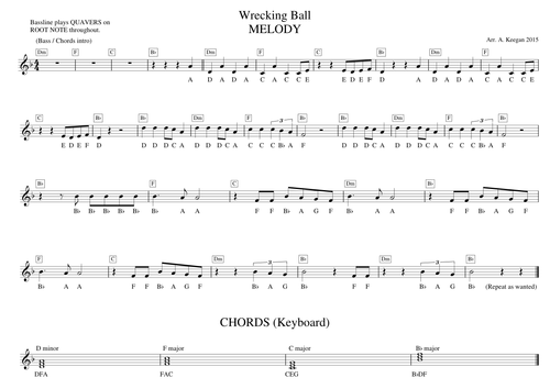 Wrecking Ball Melodic Lead Sheet Teaching Resources
