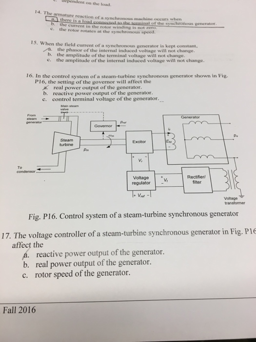 Solved In The Control System Of A Steam Turbine Synchrono